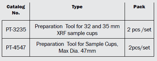 • Is ideal to be used as “Backing” for direct pressure pelletizing or for samples of minimal volume for strengthening purposes.