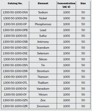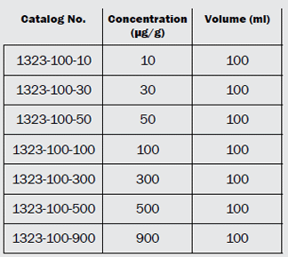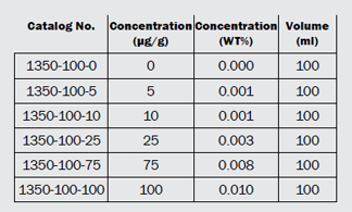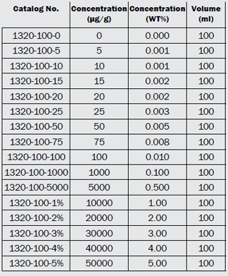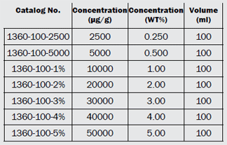 Sulfur standards in light mineral oil are suitable for use with ASTM methods D2622, D4294, D7039, D7212, D7220 and others.