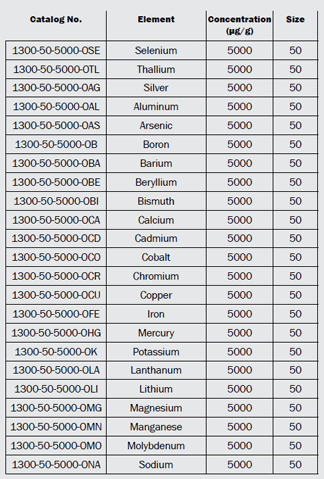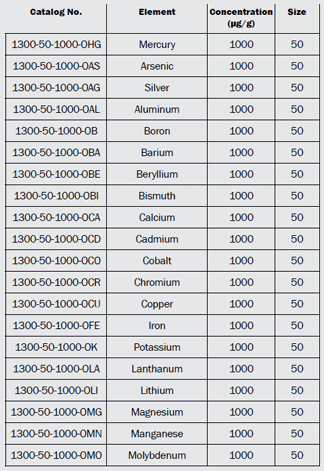 These single-element metalloorganic standards are manufactured from sulfonatebased raw materials. They are ideal for the calibration of AA, ICP, DCP, RDE and XRF spectrometers for the analysis of elements in oil and other organic liquids. Available in concentrations of 1000µg/g and 5000µg/g.