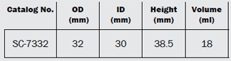 PREMIER 7000 OX Series XRF Sample Cups are double open ended disposable Inners with Lids designed for ease of assembly into aluminum sleeve supplied by Oxford Instruments®. Sample cup inners are engineered to deliver a taut film surface area. The removal of the inner from the aluminum sleeve is easy and quick due to the Inner design that includes two low profile tabs that facilitate disengagement. This style cups are suitable for Oxford Instruments®