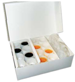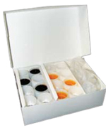 CEMBLES™ packaging trays are portable and incorporate a specialty wing flap element to ensure that sample cups are safe guarded in place during shipping. Pre-assembled sample cups are fitted into custom removal trays that can be placed by the instrument for easy loading and convenience. User artlessly bends back wing flap tray and fills all sample cups with sample matter within one tray. The user simply snaps lid and tests. Portable trays have viewable bottom cutout circles for users to be able to ensure that the sample is centered and stable.