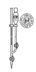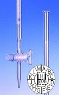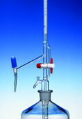 Stopcock at Filling-Tube w PTFE key with Support Base Schellbach, Bang Pattern, Blue Graduation main point ring graduation DIN EN ISO 385